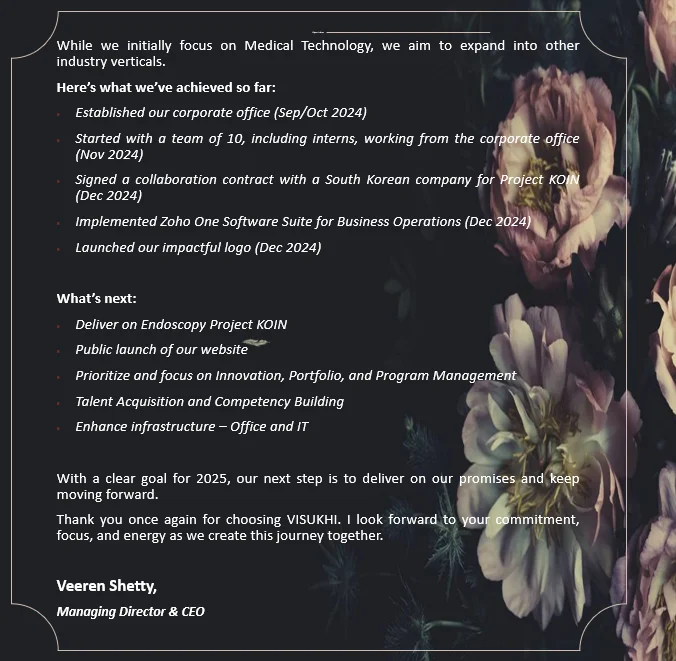 CEO’s First Message to VISUKHI Team & Company Stakeholders on 1-Jan-2025
